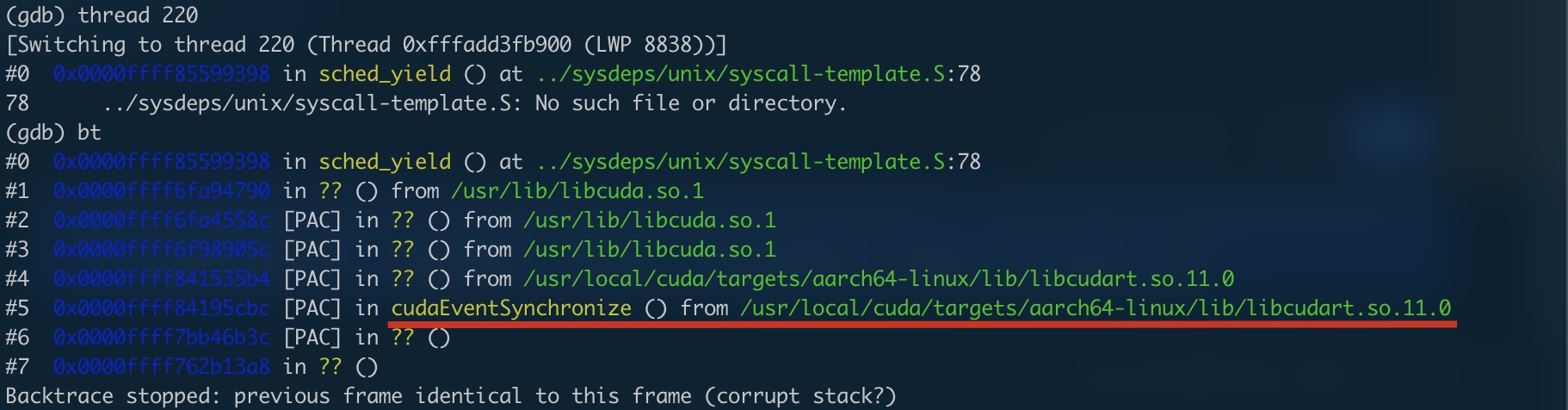 症状描述:单进程内,所有线程在调用 GPU 时集体“假死”——